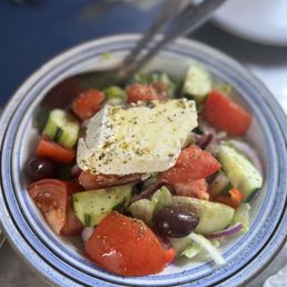 Came here for a dinner with friends, waitress was super cute and nice and called us all senorita. Food was great, got grilled olives, pita, grilled zucchini, fries, potato slices, calamari, branzino, nice vibe and fast casual kinda low key place for a good dinner. We would come again for the cute waitress with nice vibe and good food.